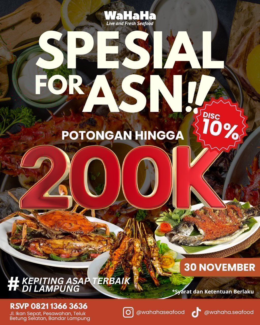 WaHaHa Seafood memberikan disc makan kepada ASN!