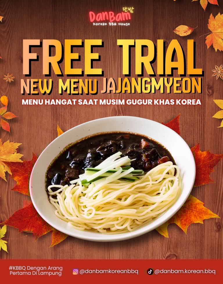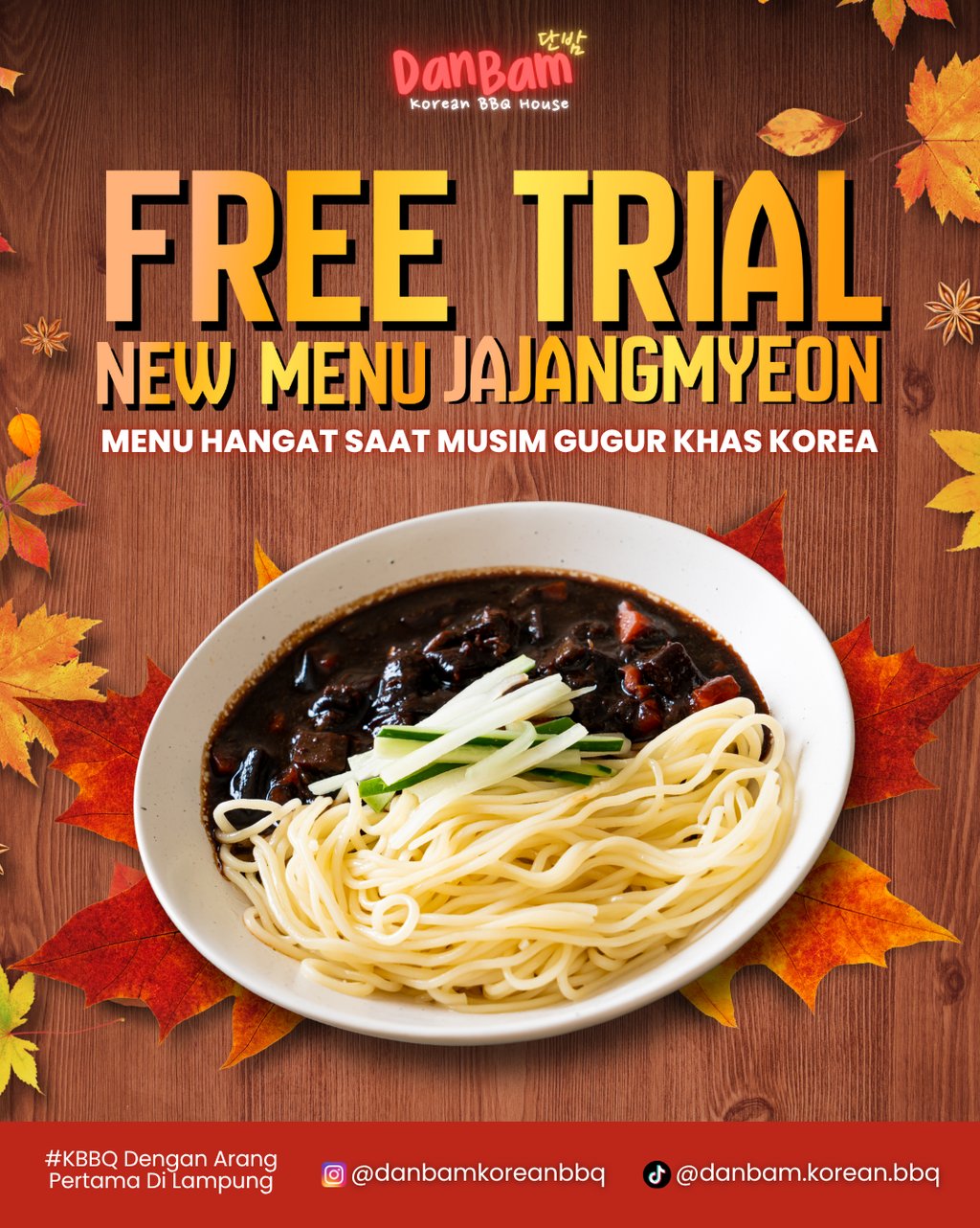 Kapan lagi dapat free trial new menu?! Dan kamu akan diberikan free trial new menu jajangmyeon tanpa minimal transaksi!