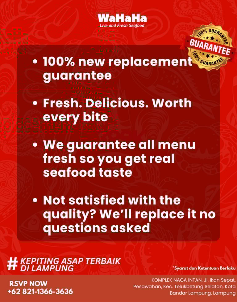 Jika produk tidak sesuai, sampaikan kepada waiters maka kami akan mengganti produk tersebut dengan yang terbaru tanpa perlu diminta.