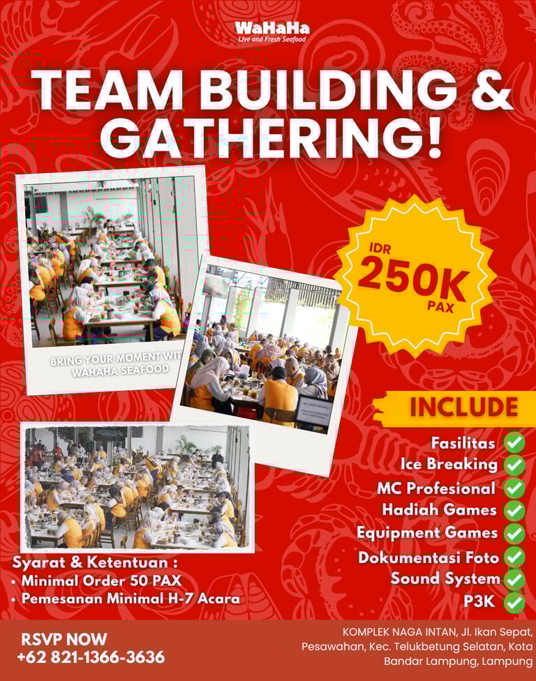 Program fun team building yang dirancang untuk kelompok perkantoran, dengan fokus pada interactive games dan sesi makan seafood berkualitas tinggi di Wahaha Seafood.